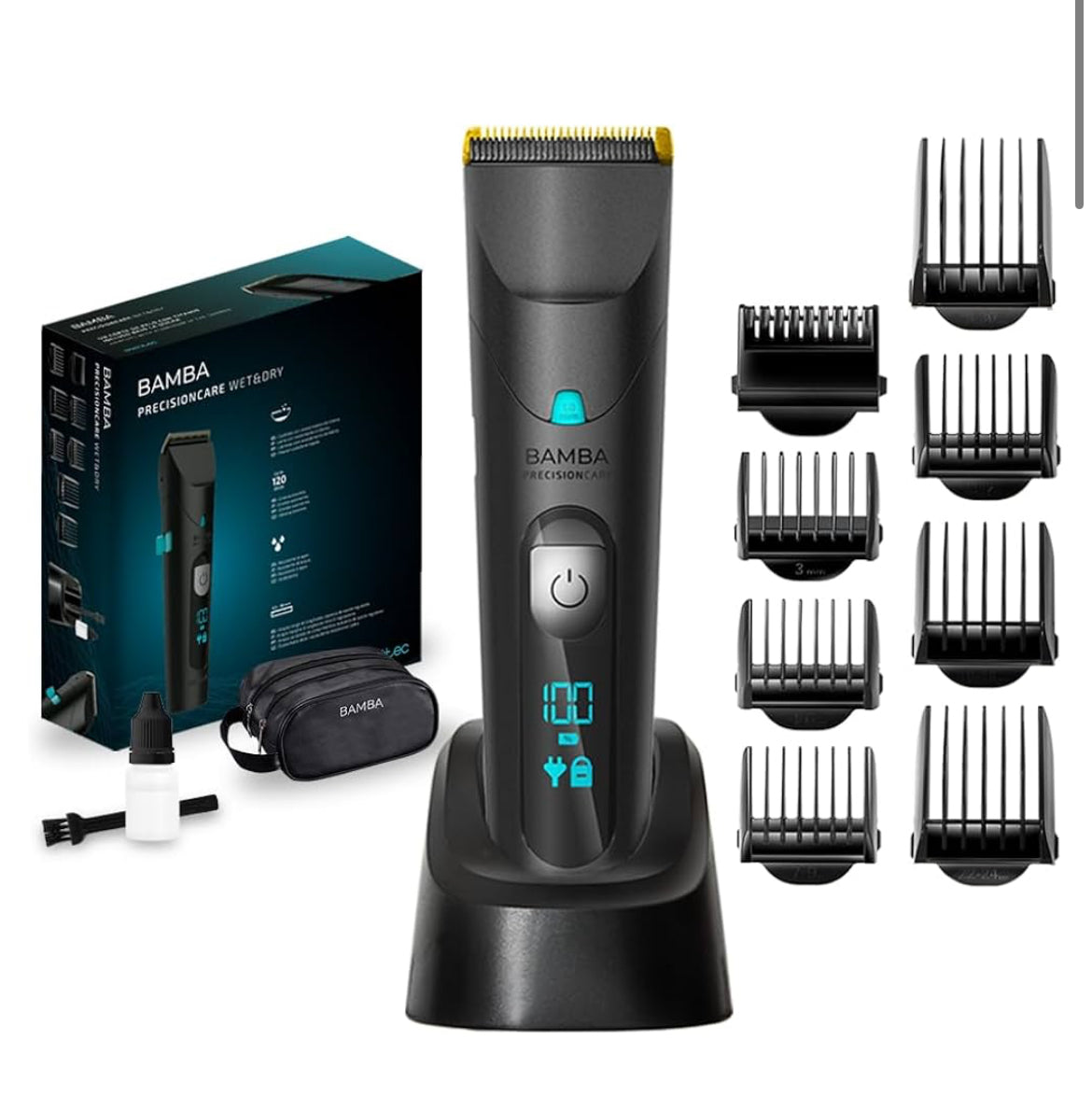 Cecotec Cortapelos Bamba PrecisionCare Wet&Dry. Cuchillas Acero Inoxidable con Revestimiento de Titanio, Batería de litio, Autonomía hasta 120 min, Longitudes 0,5-30 mm, 8 Peines